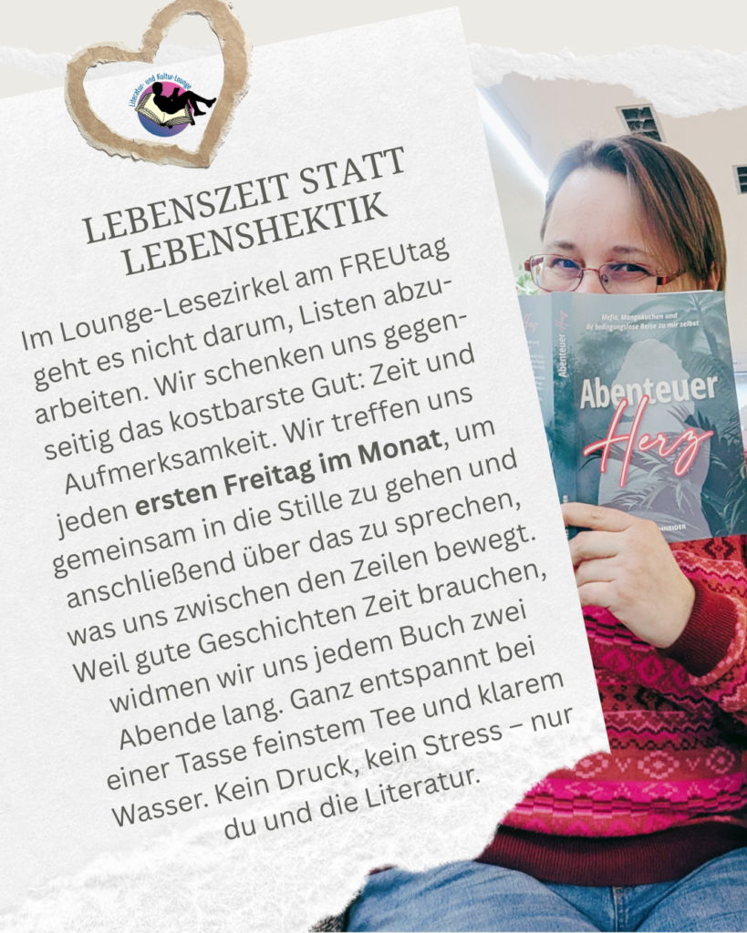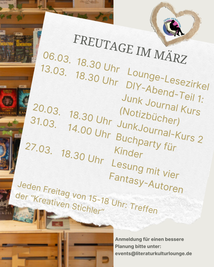 Ab 18.30 Uhr wird hier Gemeinschaft gelebt und Literatur und Kultur erlebt. FREUtag-Ideen und Vorschläge nehme ich jederzeit gerne entgegen.
